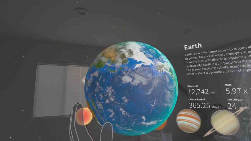 伸出双手,触摸、旋转和缩放精美细致的行星.摇动地球,旋转土星环,或观看木星上的风暴漩涡.每个天体都以逼真的动作和比例进行响应.探索木卫三、木卫四和土卫六等卫星.