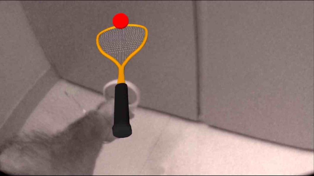 这是一款增强现实游戏,你可以在房间里玩壁球!房间尺度的边界是壁球场的墙壁.这是一款简单的AR健身游戏.