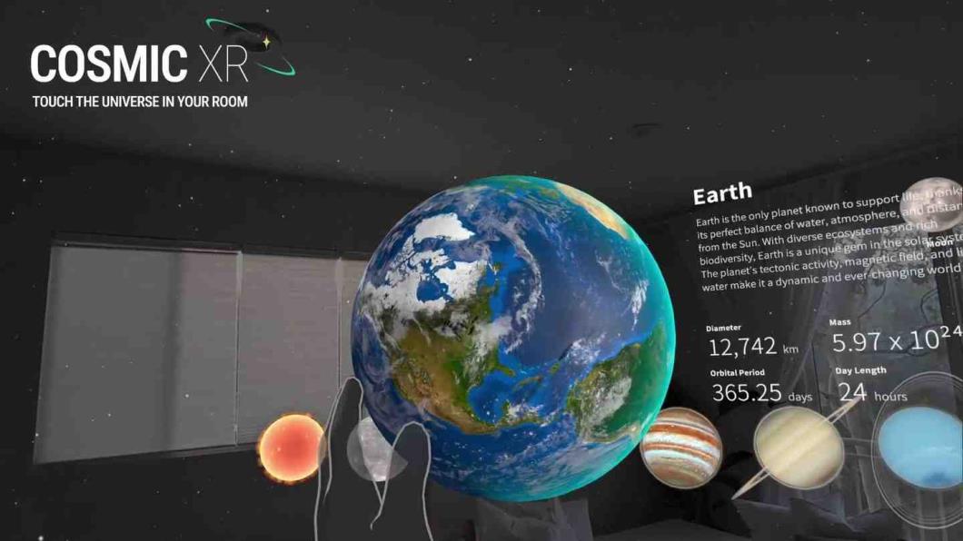 欢迎来到 Cosmic XR--您沉浸式的太空、宇宙及更广阔世界的大门,就在您的房间内.借助透视混合现实技术,您的环境将化身为一幅栩栩如生的宇宙地图.踏上一场充满星系、行星、卫星和黑洞的互动式太空探索之旅.