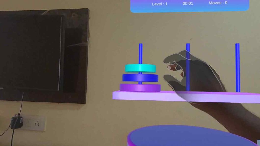 汉诺塔:这款传奇的逻辑谜题在混合现实中栩栩如生!堆叠并移动发光圆盘,在木杆上重现塔身.易上手,难精通.